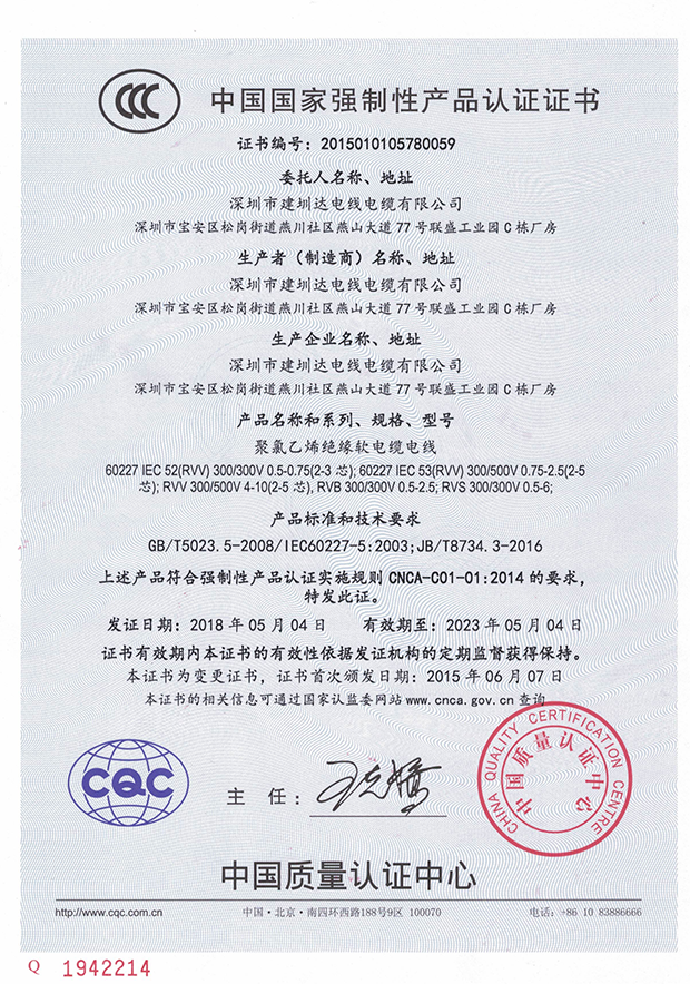 建圳達(dá)電纜立足于中國深圳,擁有技術(shù)精湛的隊伍、現(xiàn)代化生產(chǎn)設(shè)備、精密的檢測儀器,從原材料、生產(chǎn)、成品嚴(yán)格按照國家標(biāo)準(zhǔn)檢測,通過多個認(rèn)證。